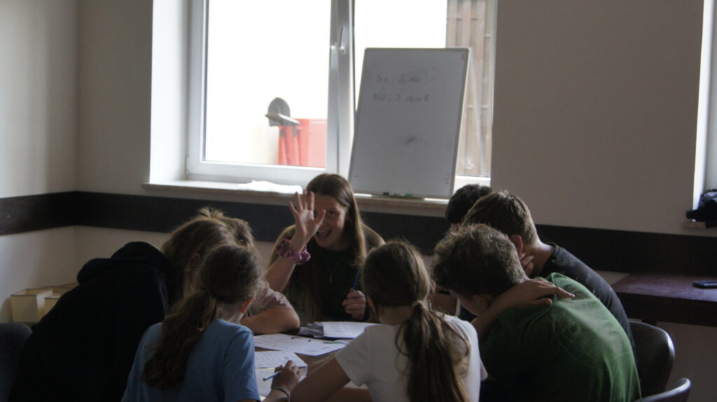 W lipcu 2023 wysłaliśmy dziewięciu naszych wolontariuszy na letni obóz dla młodzieży w Ukrainie (głównie nastolatków). Był to obóz chrześcijański organizowany przez kościół, ale jako że był to przede wszystkim obóz dla młodzieży, chodziło o dobrą zabawę, budowanie relacji, poznawanie innych kultur, no i oczywiście o naukę angielskiego.